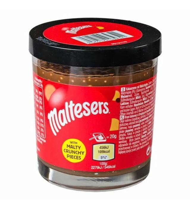 Откройте для себя невероятно вкусную шоколадную пасту "Мальтизерс/Maltesers", произведенную в Великобритании. Богатая кремовая текстура сочетается с кусочками молочного шоколада, создавая незабываемое удовольствие. Идеально подходит как для сладкоежек, так и для тех, кто любит добавлять немного радости в свой день! Подчеркните свои завтраки, десерты или просто наслаждайтесь ложкой прямо из банки – это восхищение вкуса без лишних калорий.